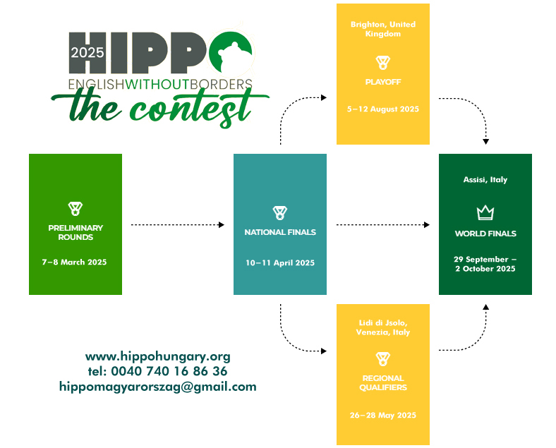 Sign up to our unique international English Language Contest, improve your English language skills, win the semifinals and get to the finals in Italy to make new friends from all over the world…and what more, be a Hippo Winner!